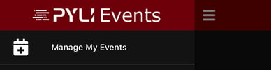 Once you download the app, open the navigation drawer on the top left. If you haven't already, select "Manage My Events" to find your upcoming event.