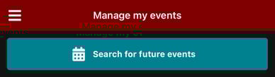- Open the event you would like to log in to. If not already added to the app, you can find it by clicking "search for future events" (see below for details on finding your event)