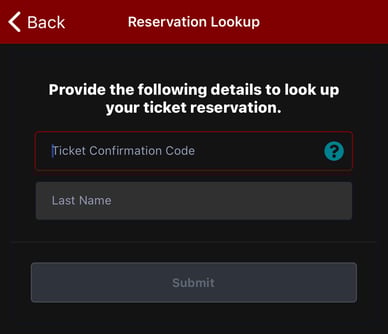 Or Lookup your event by ticket reservation using the confirmation code you were emailed after purchasing your ticket(s).