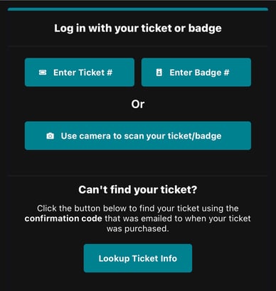- Select "Enter Badge #" or "Use camera to scan your ticket/badge"