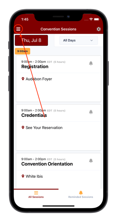 1. Click on the menu icon in the top right corner to open the menu drawer.