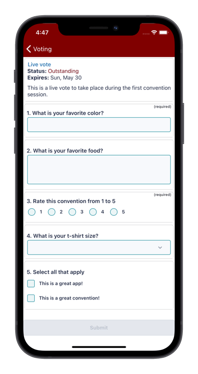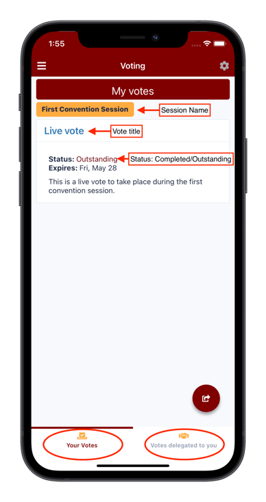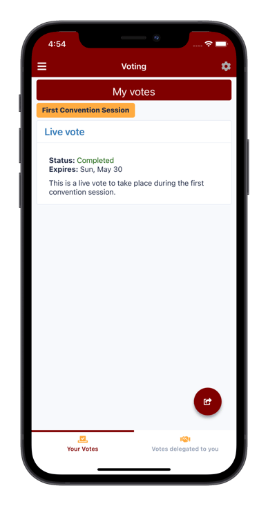 3. On this screen you will see a list of available votes taking place as well as two tabs on the bottom allowing you to switch between your votes and votes that have been delegated to you. To complete a vote first click on the vote card you wish to open.