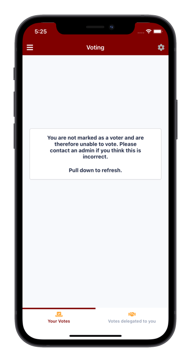If you think this is incorrect, please inform an event administrator. Once this is corrected on their end, pull down refresh on the voting page to see new votes.